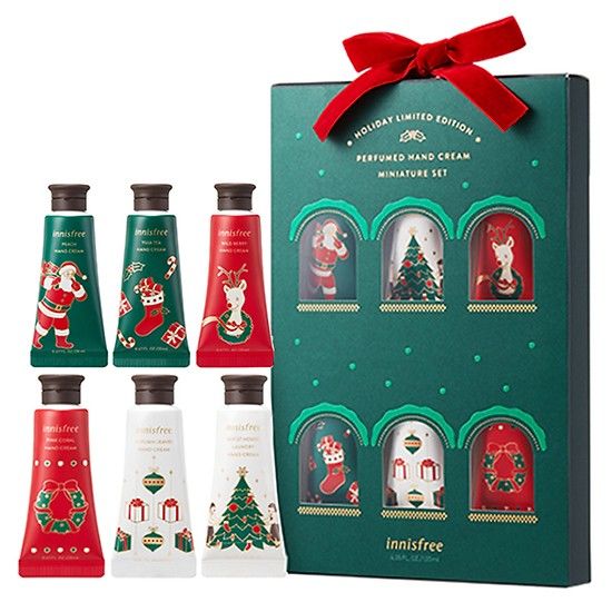 Innisfree: Các bộ skincare mini được đóng trong chai 100ml – 50ml vỏ nhựa trắng, in logo xanh lá tạo cảm giác organic.